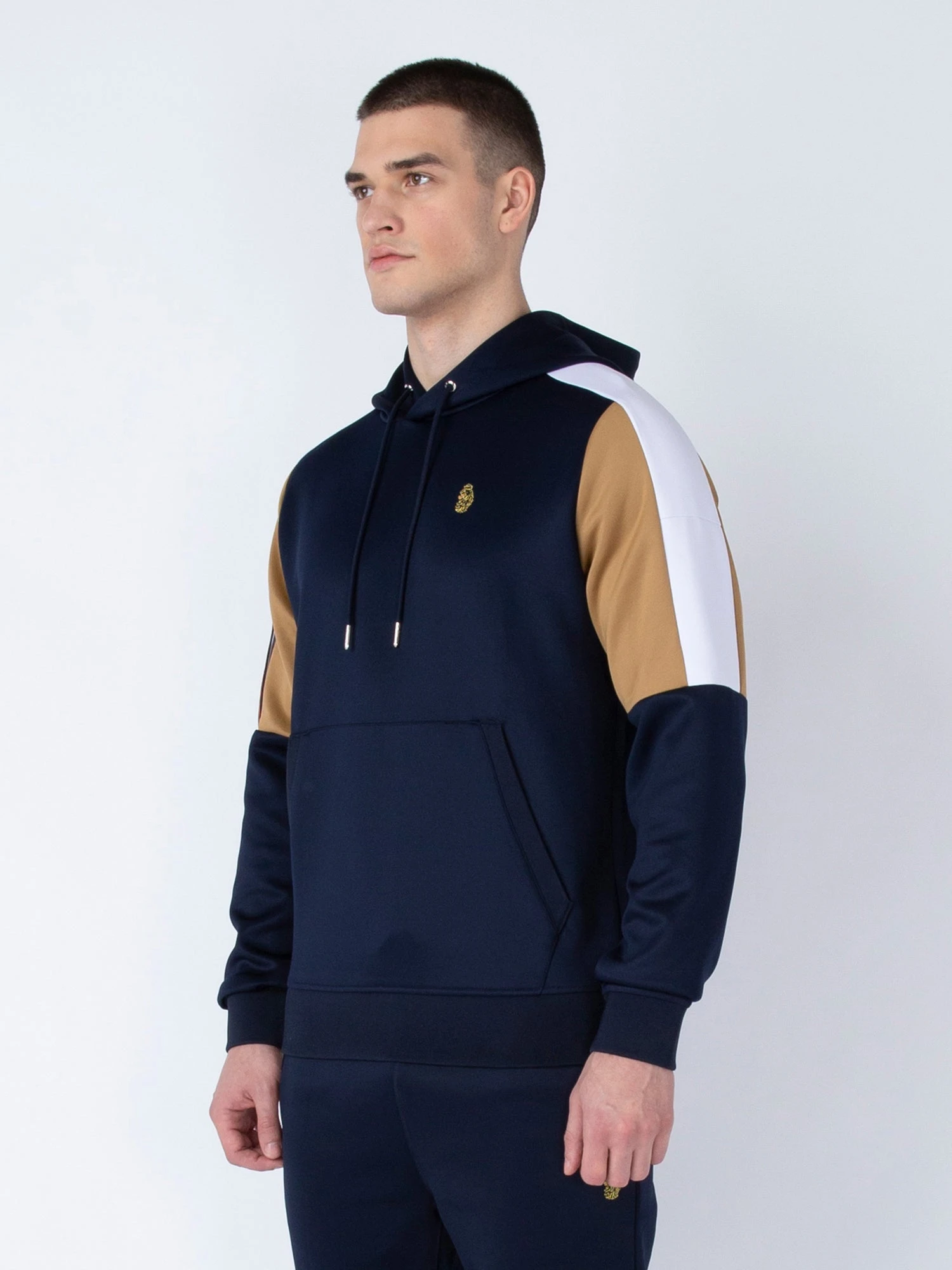 LUKE is your go-to brand for terrace-ready styles and this hoodie offers just that. It is constructed from a classic tricot, detailed with cut, and sew shoulder and sleeve panels and is fitted with a zip pocket on the right sleeve, featuring the tri-colour striped tape. It is then signed off with the brand’s iconic lion head embroidery on the left chest.