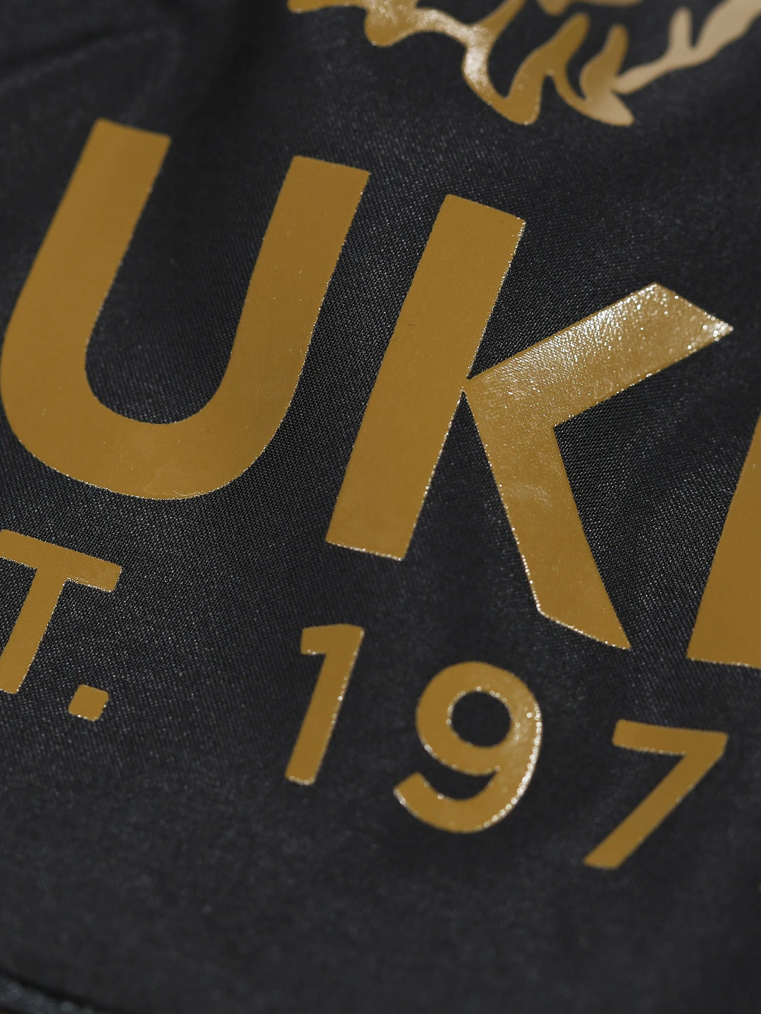 - Large LUKE EST. 1977 black/gold badge with raised gloss print