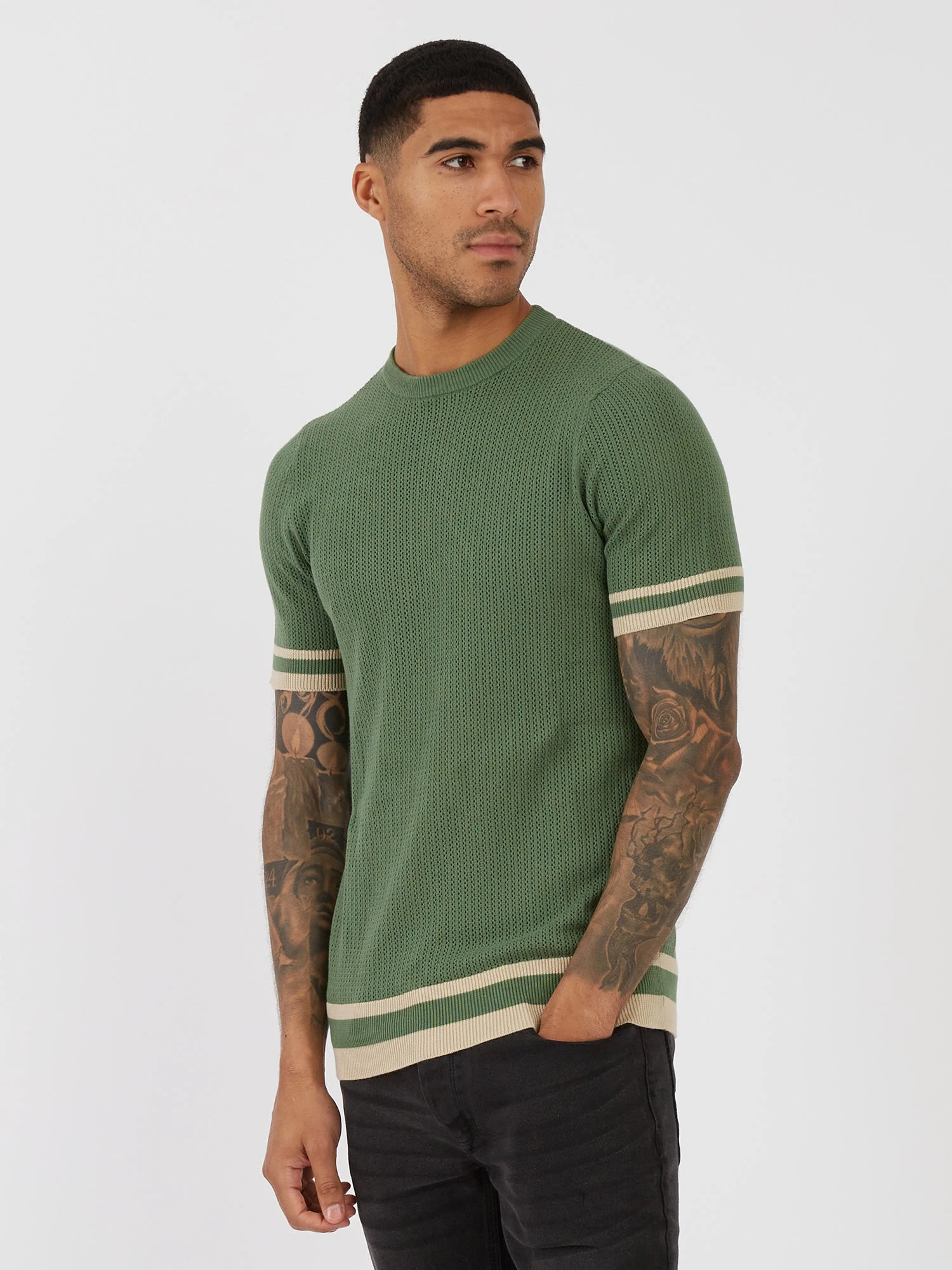 LUKE continues to upgrade timeless sport style with this knitted crew neck tee. Crafted from pure cotton, it is cut to a slim fit and features a comfy rib neck and has a knitted stripe rib on the sleeve cuff and hem.