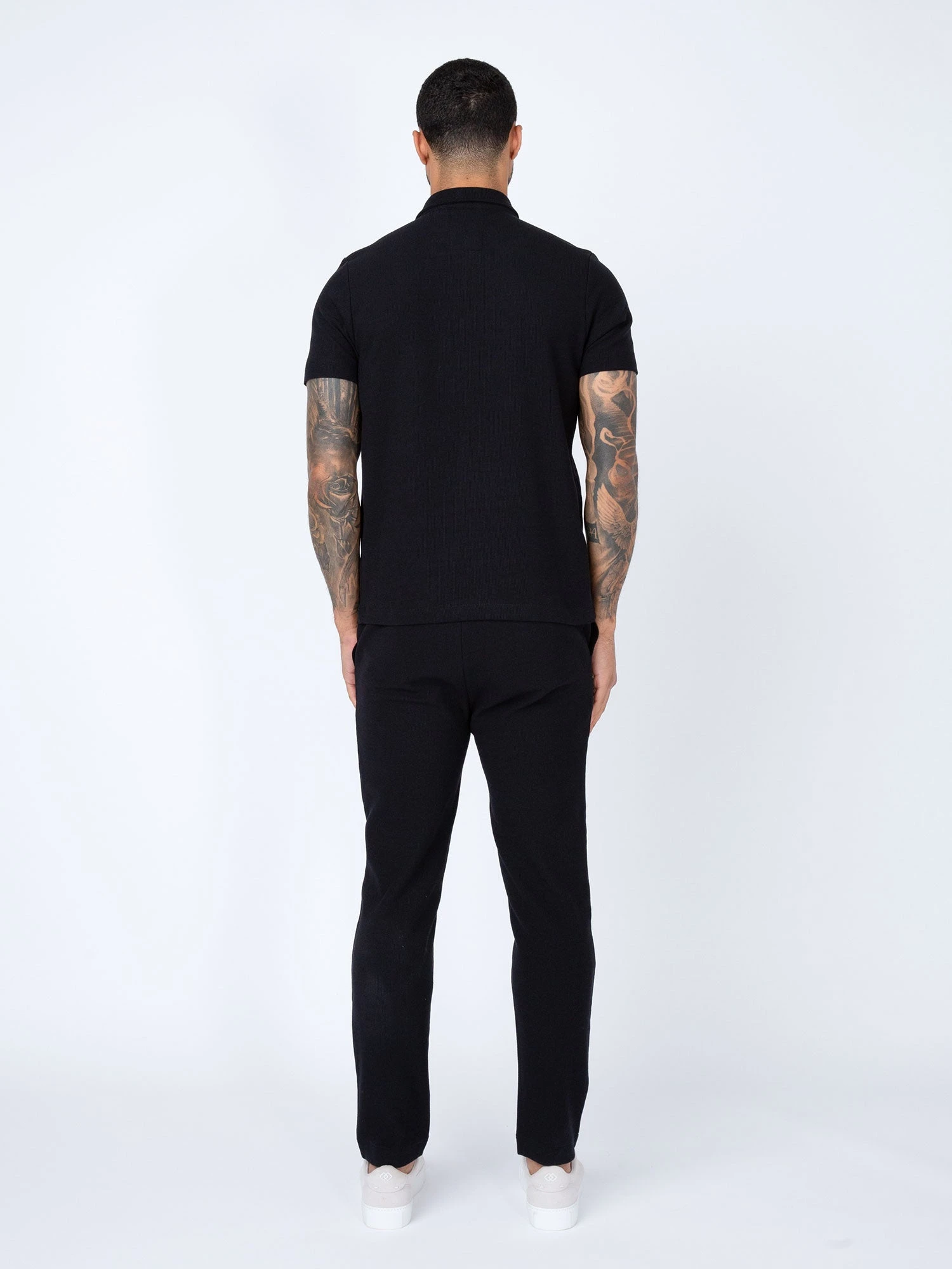 This polo & trousers set from LUKE is constructed from a lightweight cotton blend and is the perfect smart- casual pair for the summer months. Polo features a classic collar and summary placket detailed with colour match horn summarys. Uncuffed trousers are cut to a straight leg fit and feature a comfy drawcord waist. The look is then complete with a subtle LUKE 1977 metal bar on the left sleeve and above rear pocket.