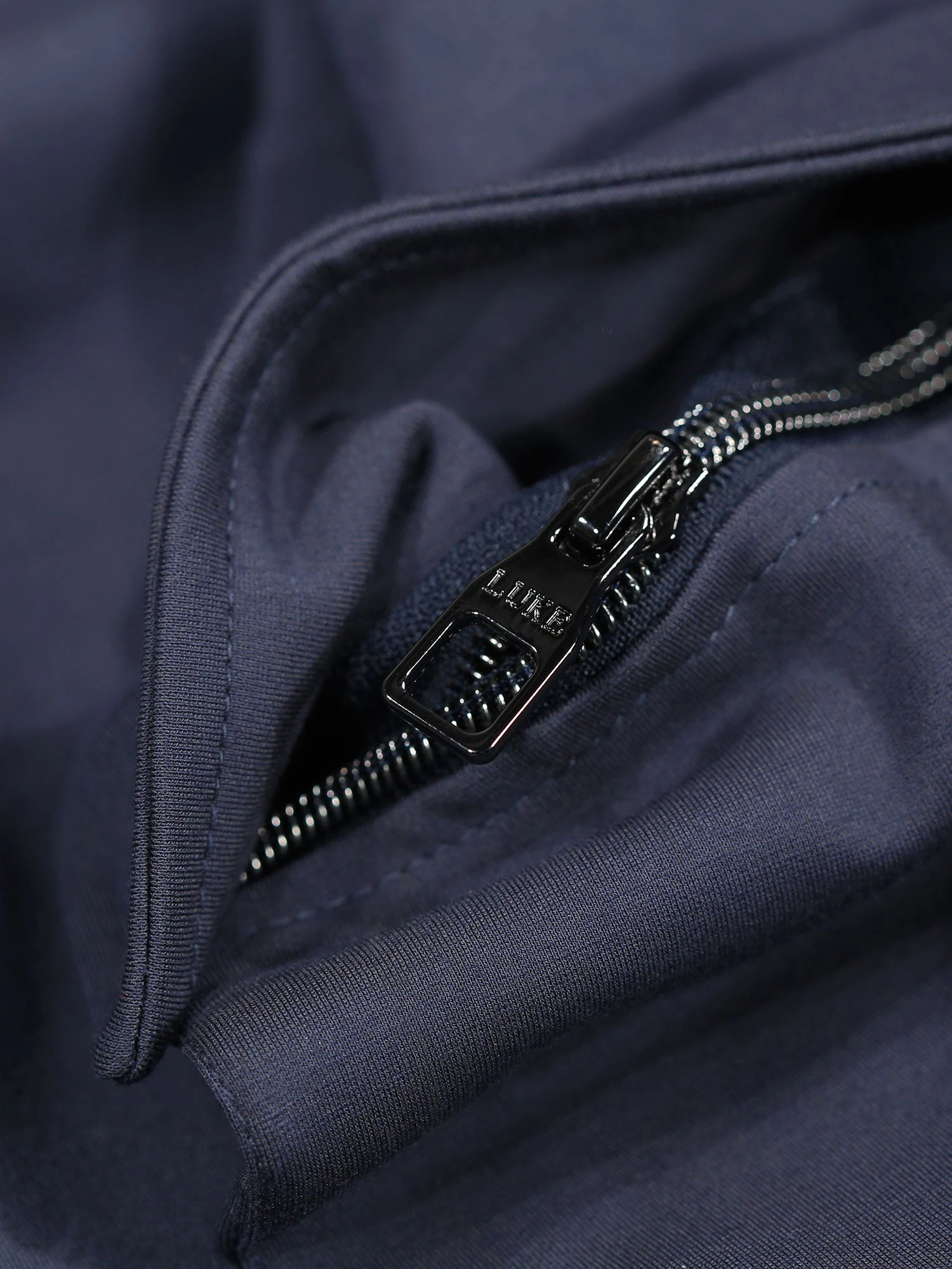 - Dark pewter gloss zip pullers, eyelets and cord ends