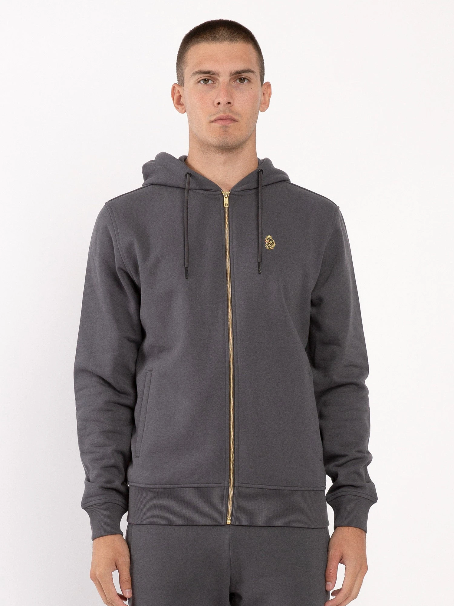 Comfortable, cool and classic, this hoodie from LUKE is cut from a cotton fleece back fabrication which ensures warmth and comfort in the colder months. It is detailed with a centre gold zip fastening running from hem to hood. The classics are considered and has soft rib cuffs and hem and is complete with the brands iconic lion head embroidery on the left chest.