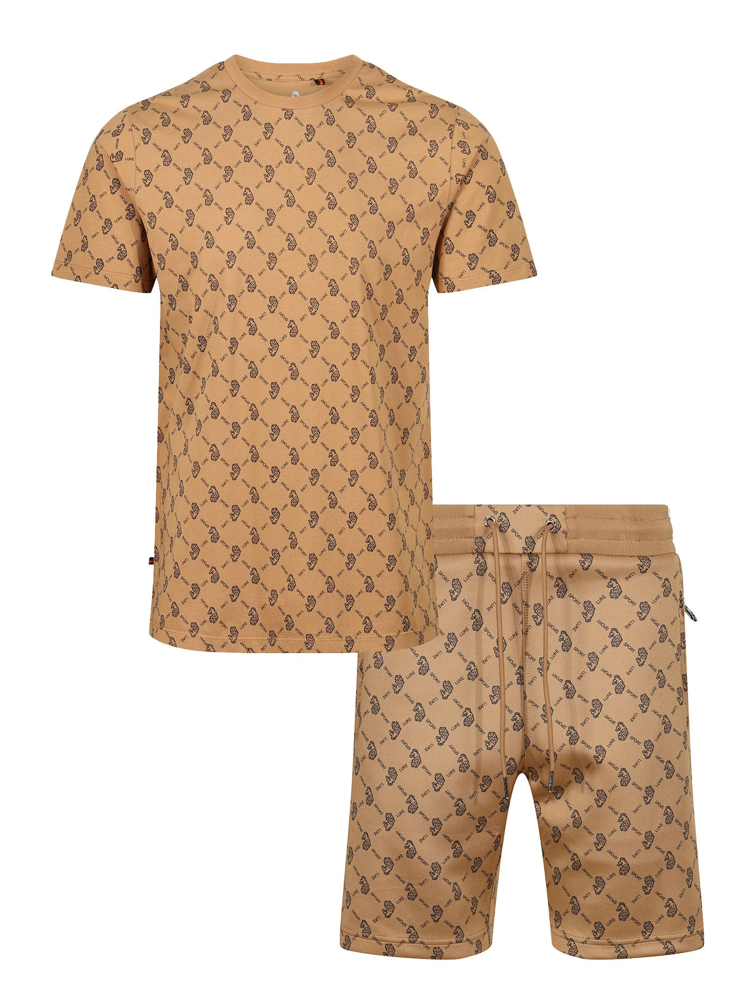 This classic t-shirt & shorts set from LUKE have been elevated this season with an all over LUKE SPORT repeat print. Crew neck t-shirt is cut from pure cotton jersey. It has a soft rib neck for maximum comfort. Shorts are cut from our luxury tricot fabric and detailed with a drawcord rib waist- they are perfect for comfy everyday wear. They feature essential zip pockets, handy for all your essentials. The look is then complete with the brand’s iconic lion head embroidery on the left chest and left leg.