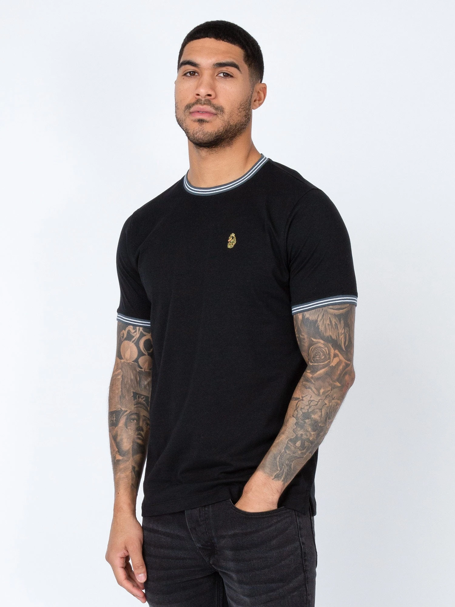 Keeping things cool and casual, with this tee from LUKE. Constructed from a soft cotton, it is detailed with a comfy rib crew neck and cuff which is detailed with contrast tipping. The look is then signed off with the brand’s iconic lion head embroidery on the left chest.