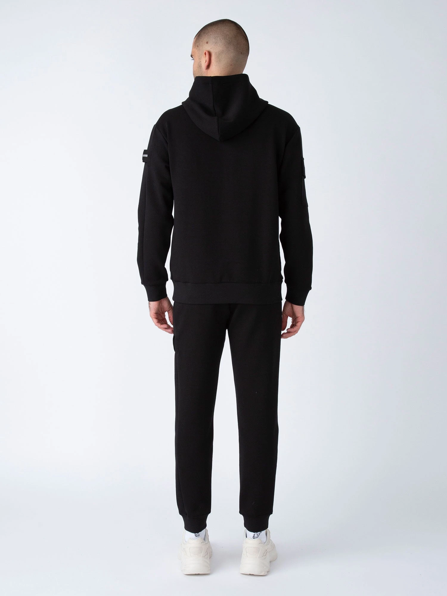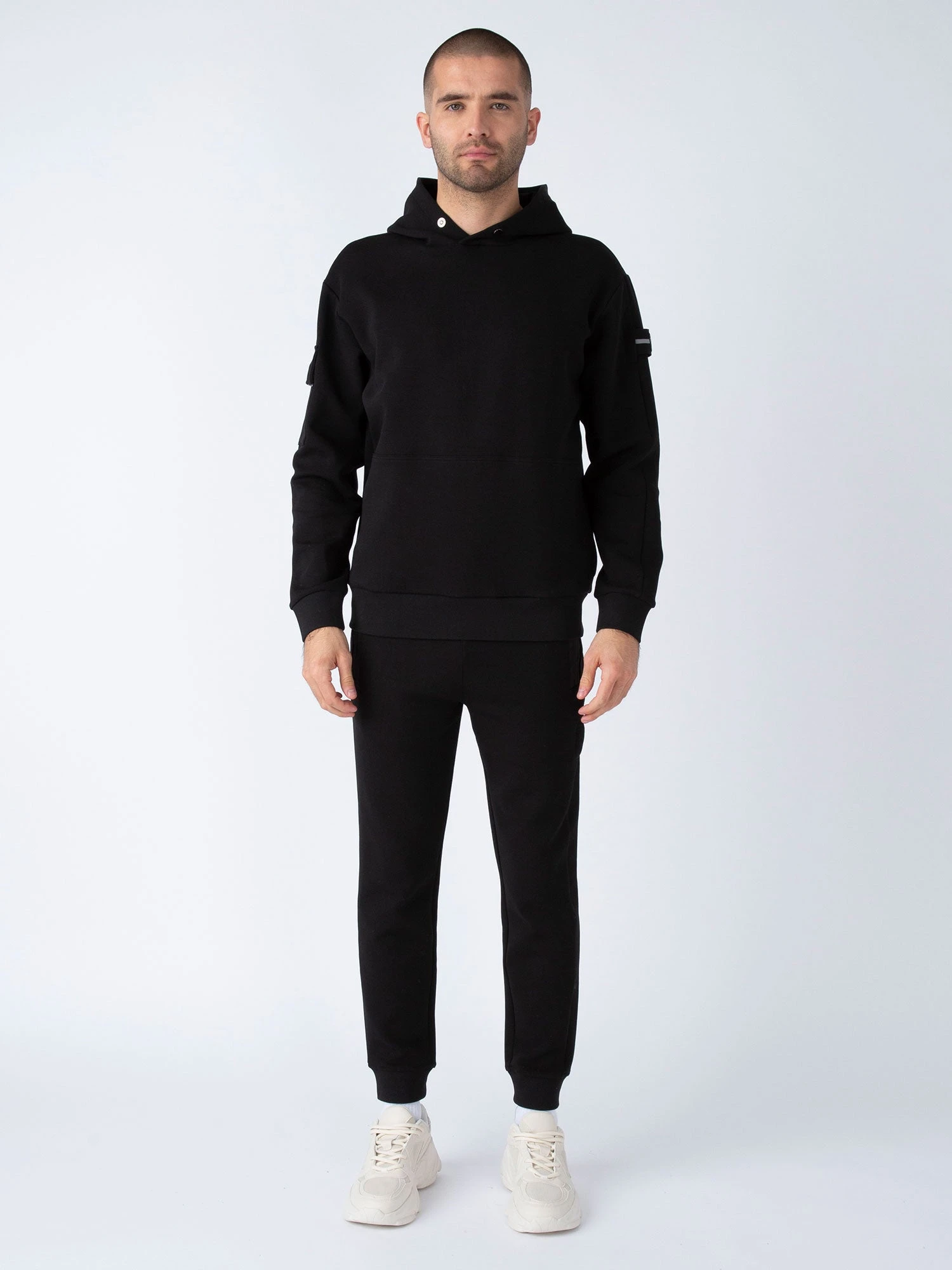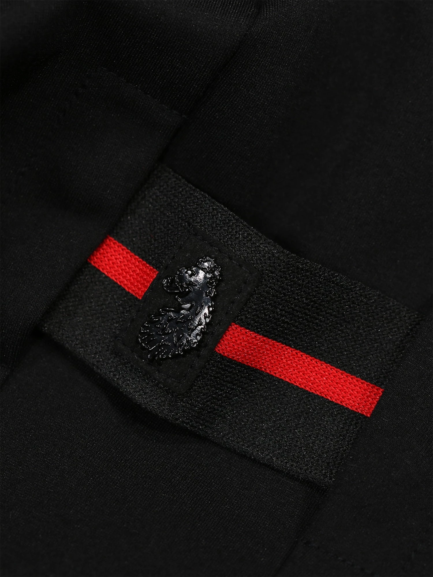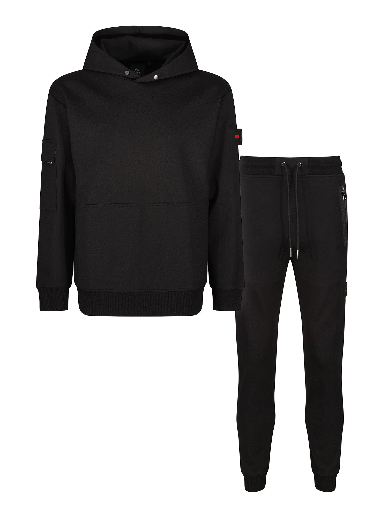 This premium hoodie & joggers set from LUKE is crafted from a smooth luxe touch fabrication. Hoodie is cut to a relaxed fit and detailed with dark pewter gloss trims. It features a zip pocket on the right sleeve and handy lower front pockets. The hood is styled with a magnetic snap summary at the front and the left sleeve is styled with a detachable striped tape detailed with the brand’s iconic shiny raised metal lion felt badge. Joggers are detailed with metal trims, and feature handy zip pockets. They are fitted with a comfy drawcord waistband for a customised fit and are detailed with a detachable striped tape on the left leg.