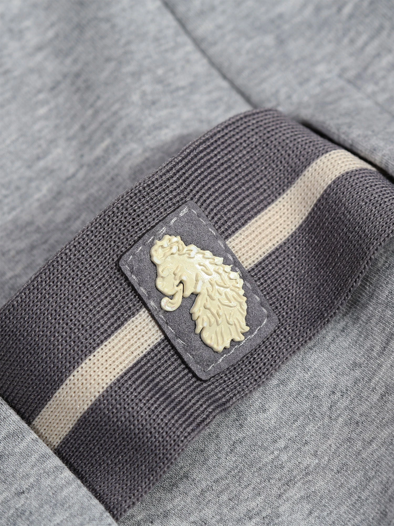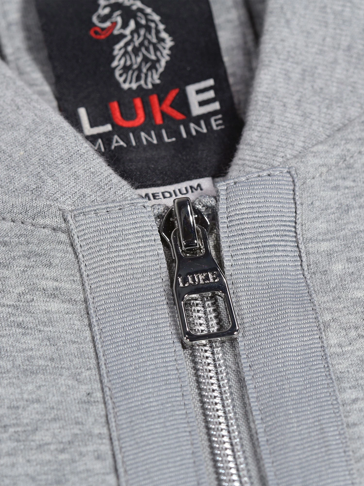 LUKE puts a contemporary spin on the classic varsity jacket. Crafted from a premium luxe touch fabrication, it’s cut to a relaxed fit and detailed with chrome trims. It features a front zip closure, soft rib trims throughout and handy lower zip pockets, perfect for all your essentials. This piece is detailed with webbing tape either side of the zips and styled with a detachable sleeve tape. The look is then signed off with the brand’s iconic shiny raised metal lion felt badge.