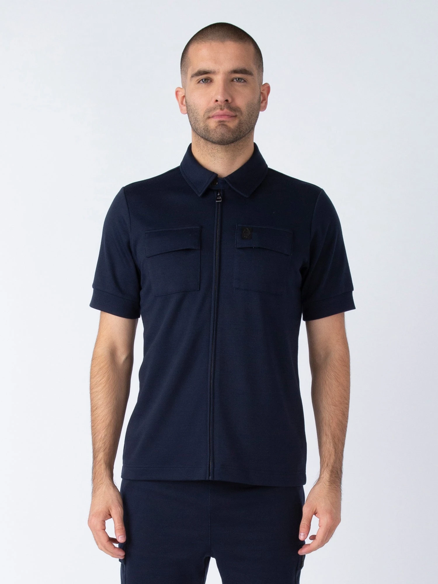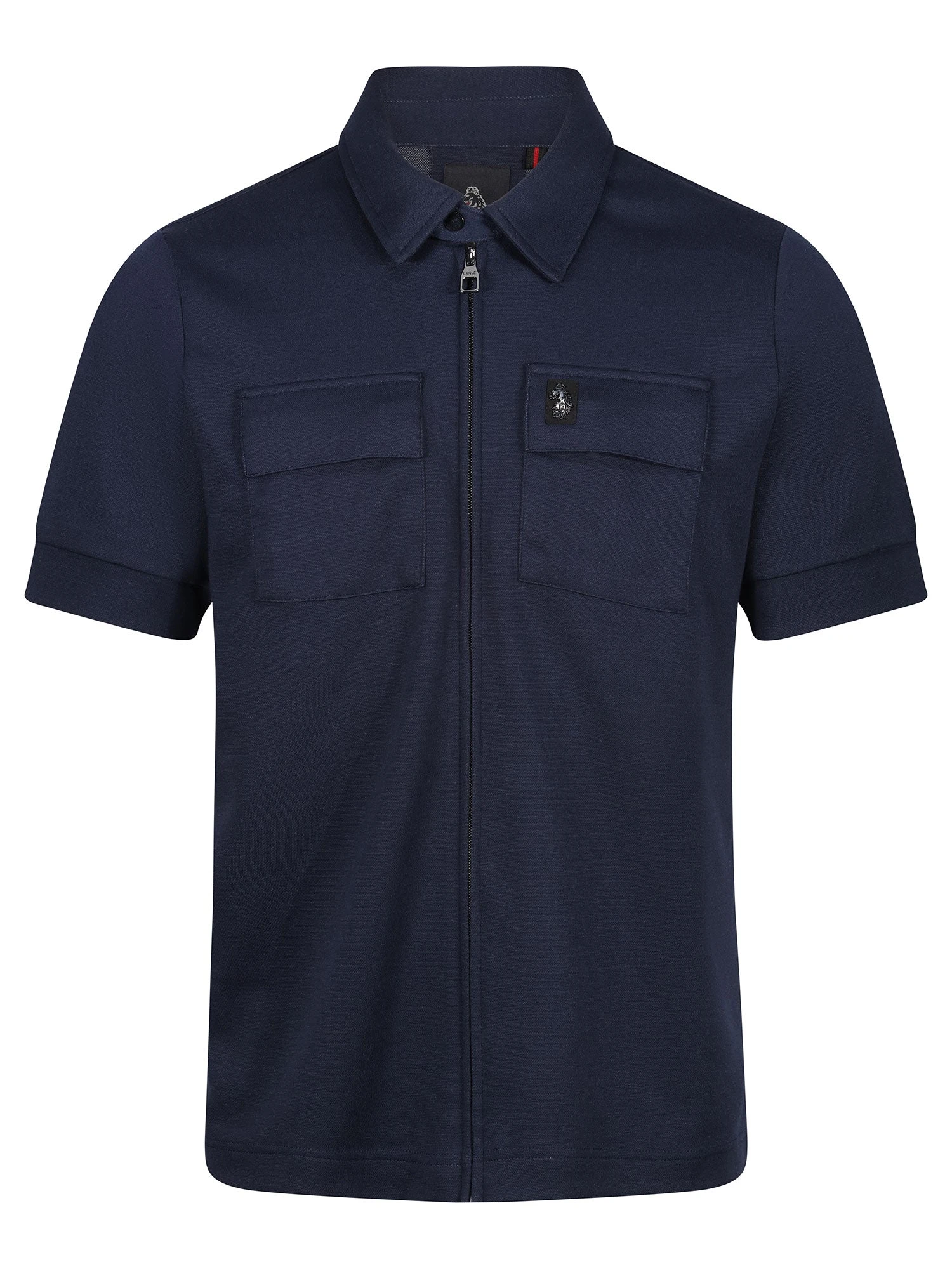 This premium zip-through, short sleeved polo from LUKE MAINLINE is the perfect smarter-casual piece for your wardrobe this season. Crafted from a luxury cotton blend, it is fitted with large utilitarian chest pockets and detailed with dark pewter gloss trims. It features a subtle self-fabric tab and magnetic snap closure at the neck and then the look is complete with brand’s iconic LUKE shiny raised metal lion felt badge on the left chest.