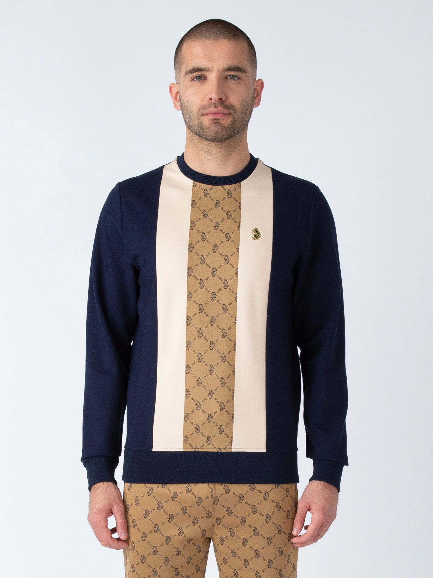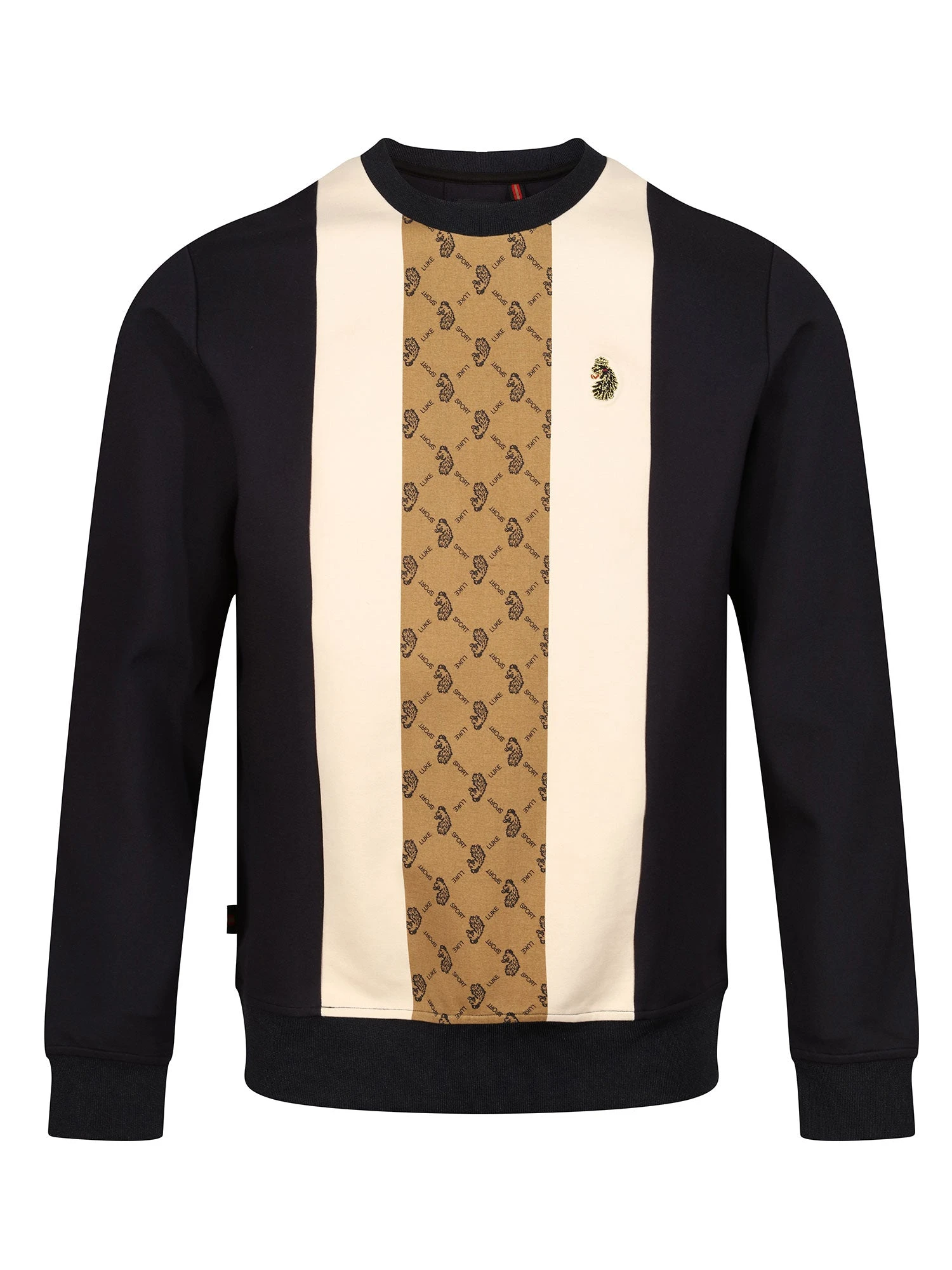 LUKE has your weekend attire covered with this casual sweat. Cut from a premium interlock fabrication, it is styled with soft rib trims throughout and features a contrast cut and sew front panel featuring the LUKE SPORT repeat print in the centre.