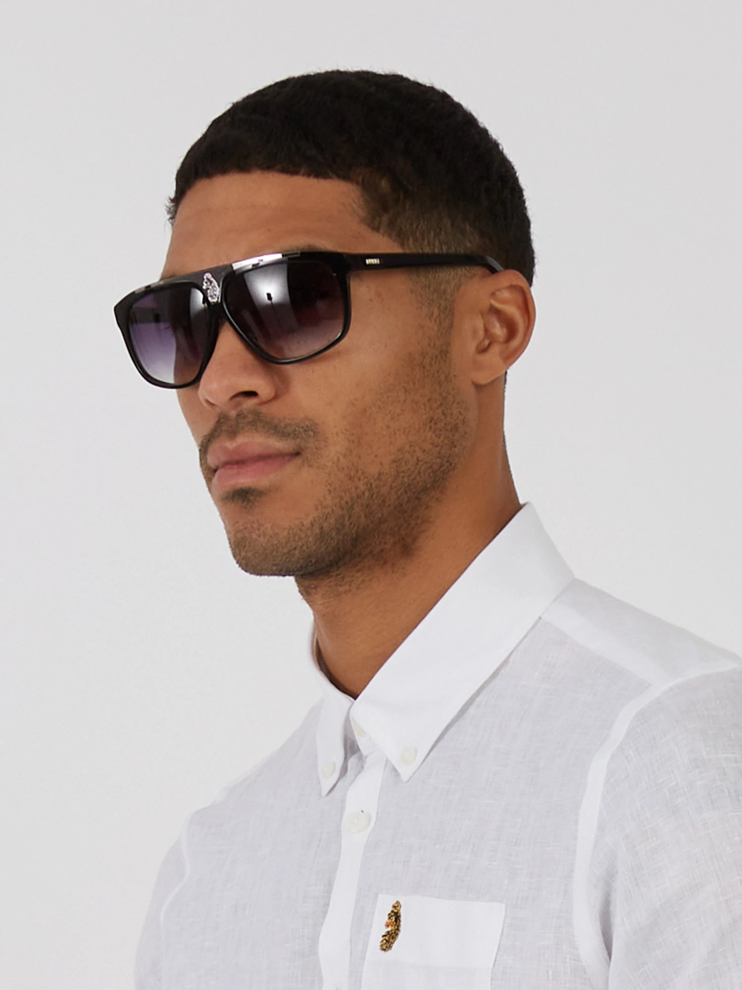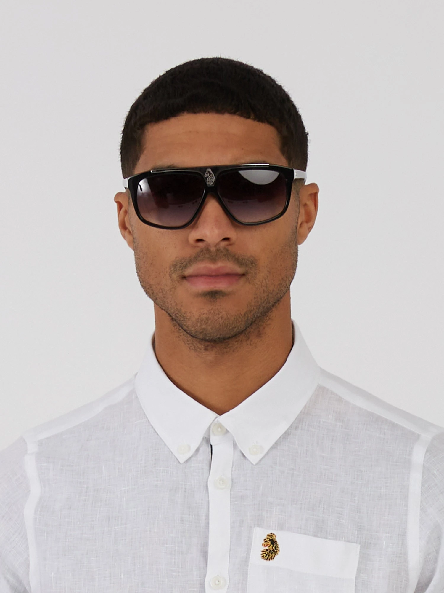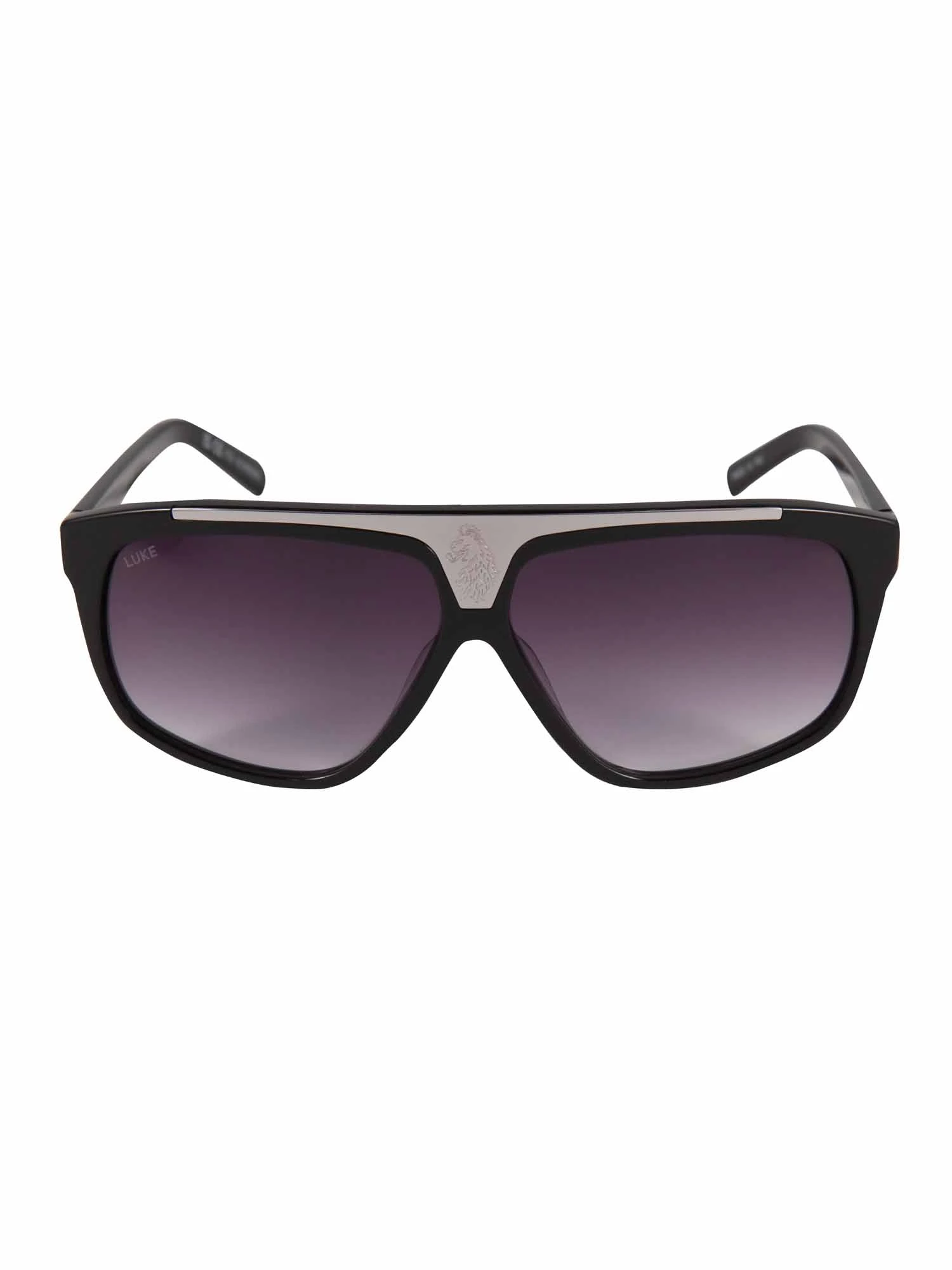 LUKE introduces the stylish Shield sunglasses in two classic colourways. Detailed with a LUKE branded metal plate on the left temple, they are expertly crafted from acetate with a solid front stainless steel panel and are fitted with tinted gradient lenses. They are complete with the brand’s signature printed on the right front lens and the laser lion logo at the front.