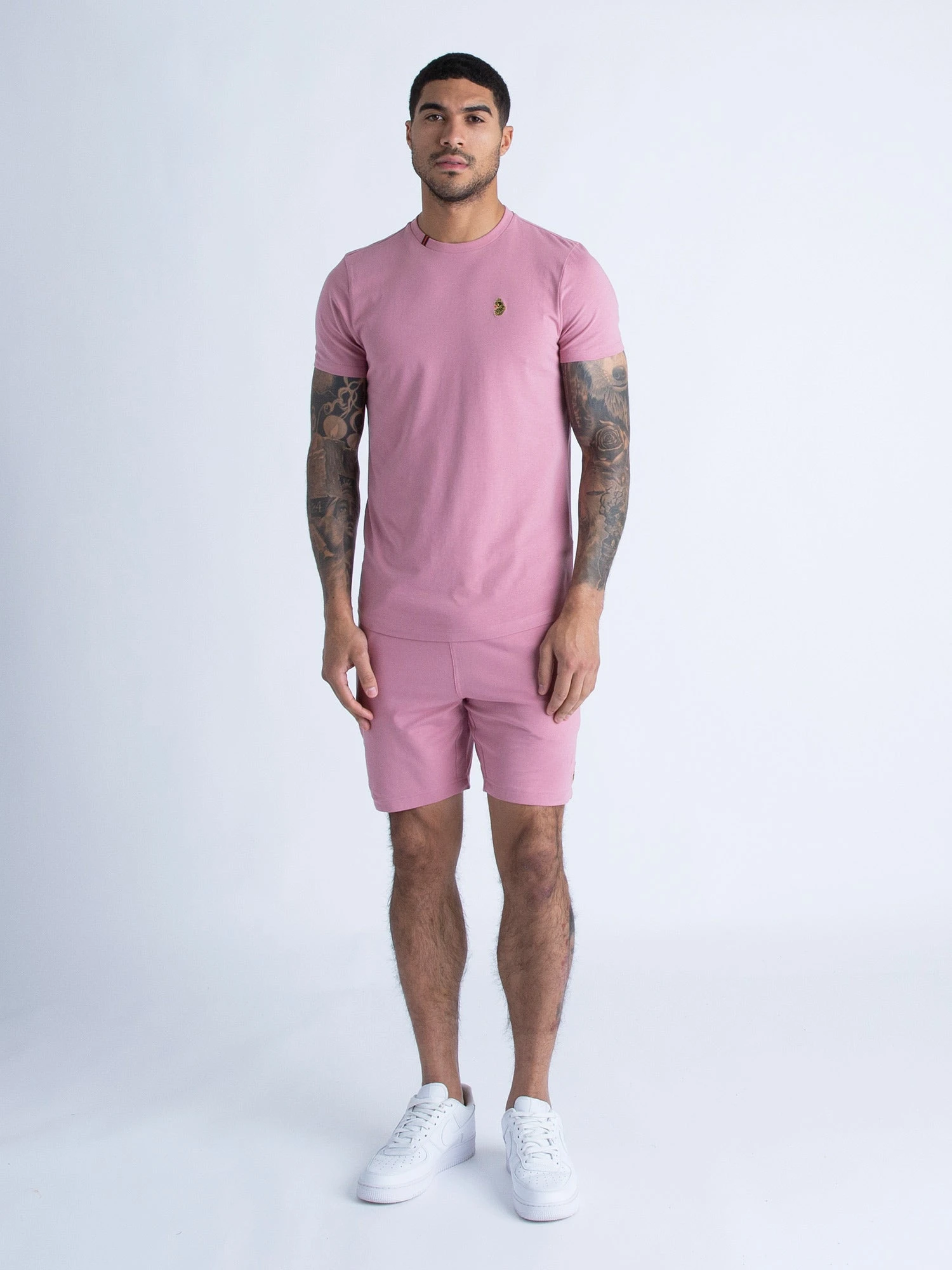 This casual set from LUKE is perfect for everyday wear, featuring a classic crew neck tee and comfy lightweight shorts. They are cut from a super soft cotton blend and are complete with the brand’s iconic lion head embroidery on the left side.