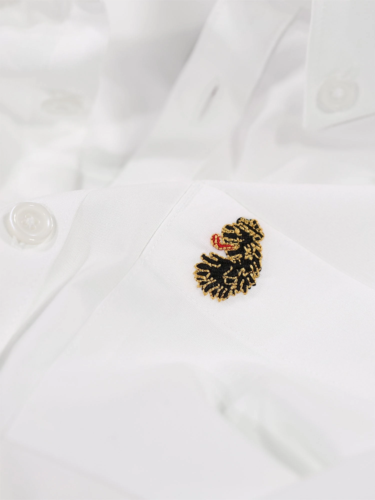 This classic LUKE long sleeved shirt is an essential item for your wardrobe, classically styled with a summaryed-down collar and a simple chest patch pocket. It is detailed with imitation river shell plastic summarys on the central front placket, running from hem to collar and is completed with the brand’s iconic lion head embroidery on the left chest.