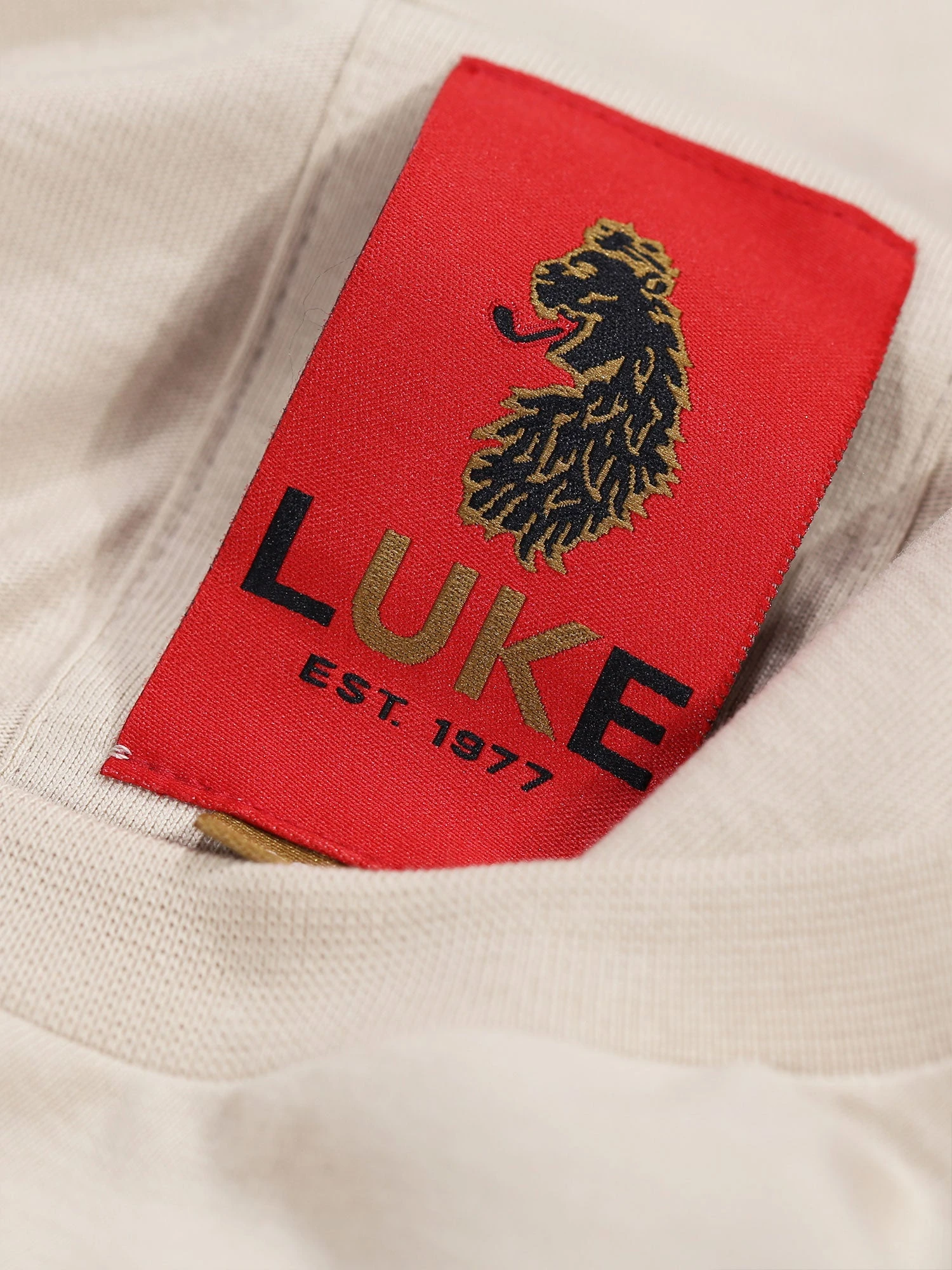 Comfortable, cool, and classic, this crew neck tee from LUKE is crafted for a soft pure cotton, fitted with a rib crew neck and features contrast cut and sew chest panels. The brand’s iconic lion head embroidery sits on the left chest to complete the look.