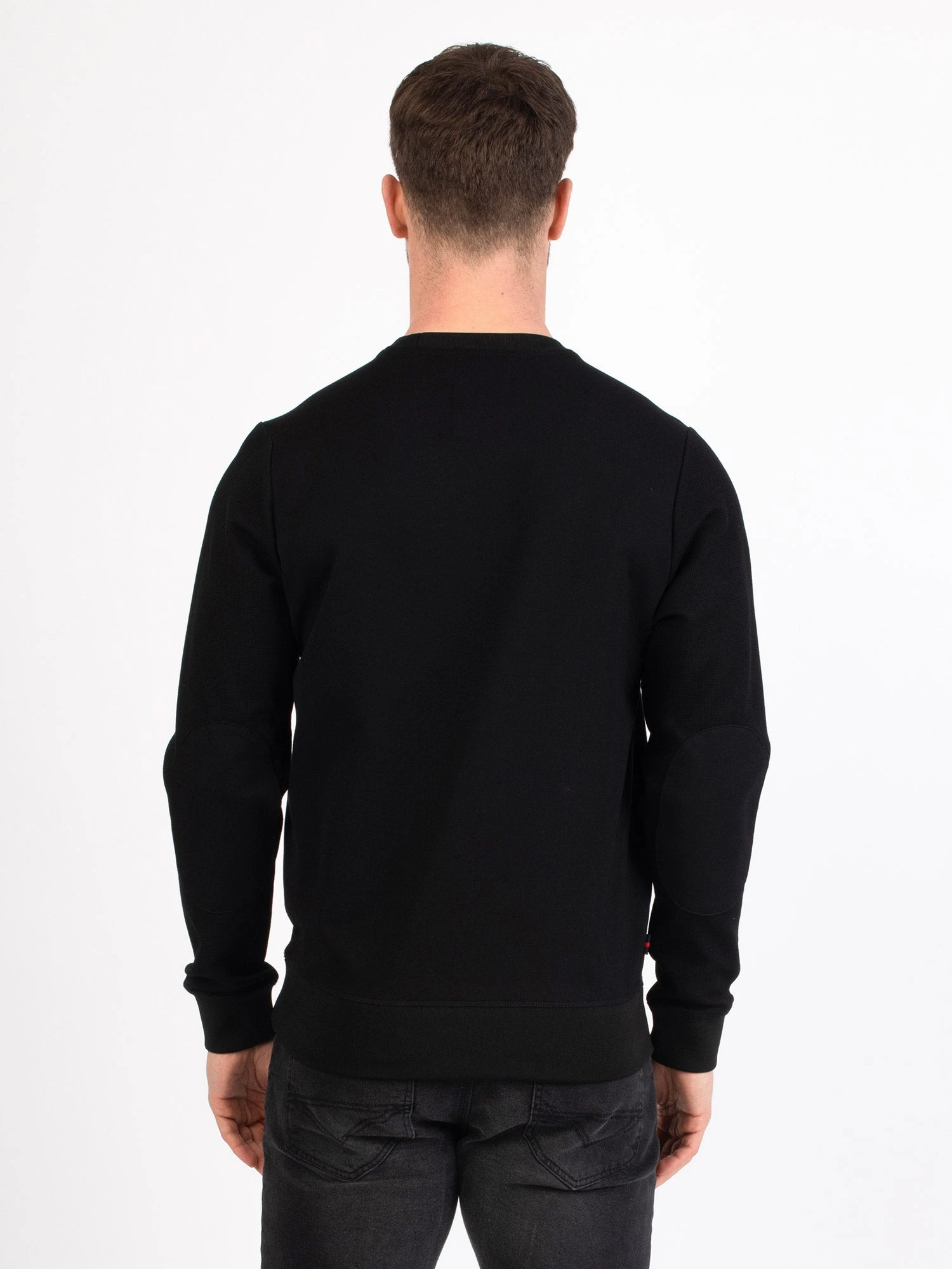 - Faux suede front, modal back, elbow and shoulder panels, textured modal sleeves