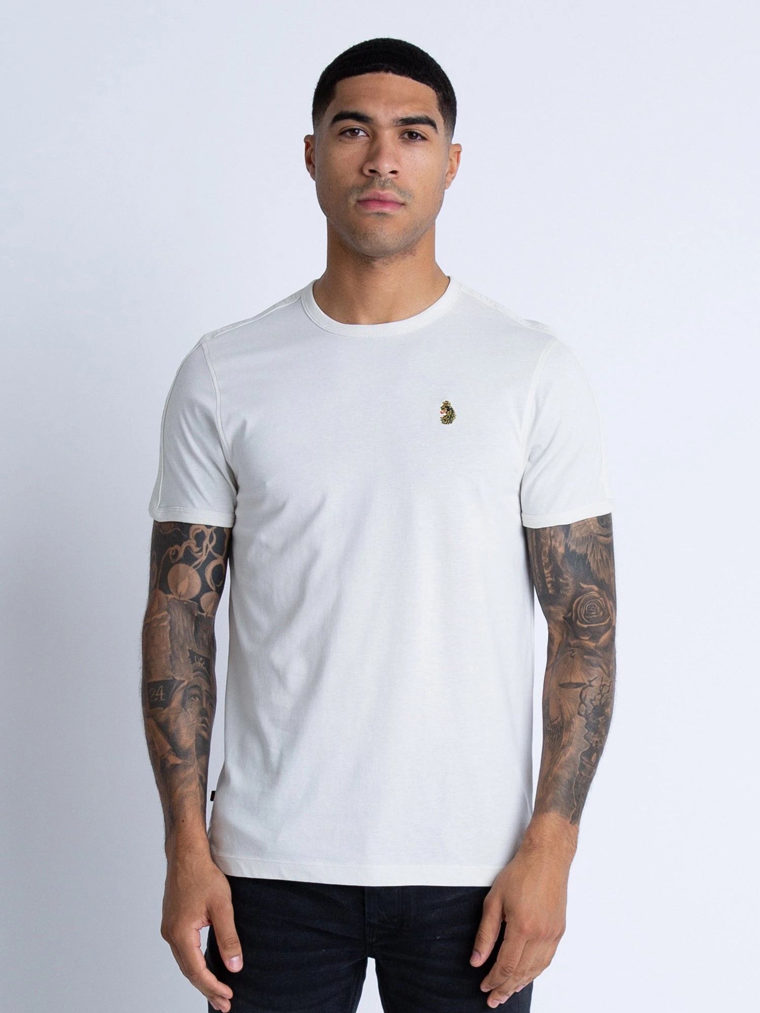 This classic crew neck t-shirt from LUKE is cut from pure cotton jersey and is detailed with a LUKE 1977 raised text tape on the shoulder and sleeve. It is complete with the brand’s iconic LUKE lion head embroidery on the left chest.