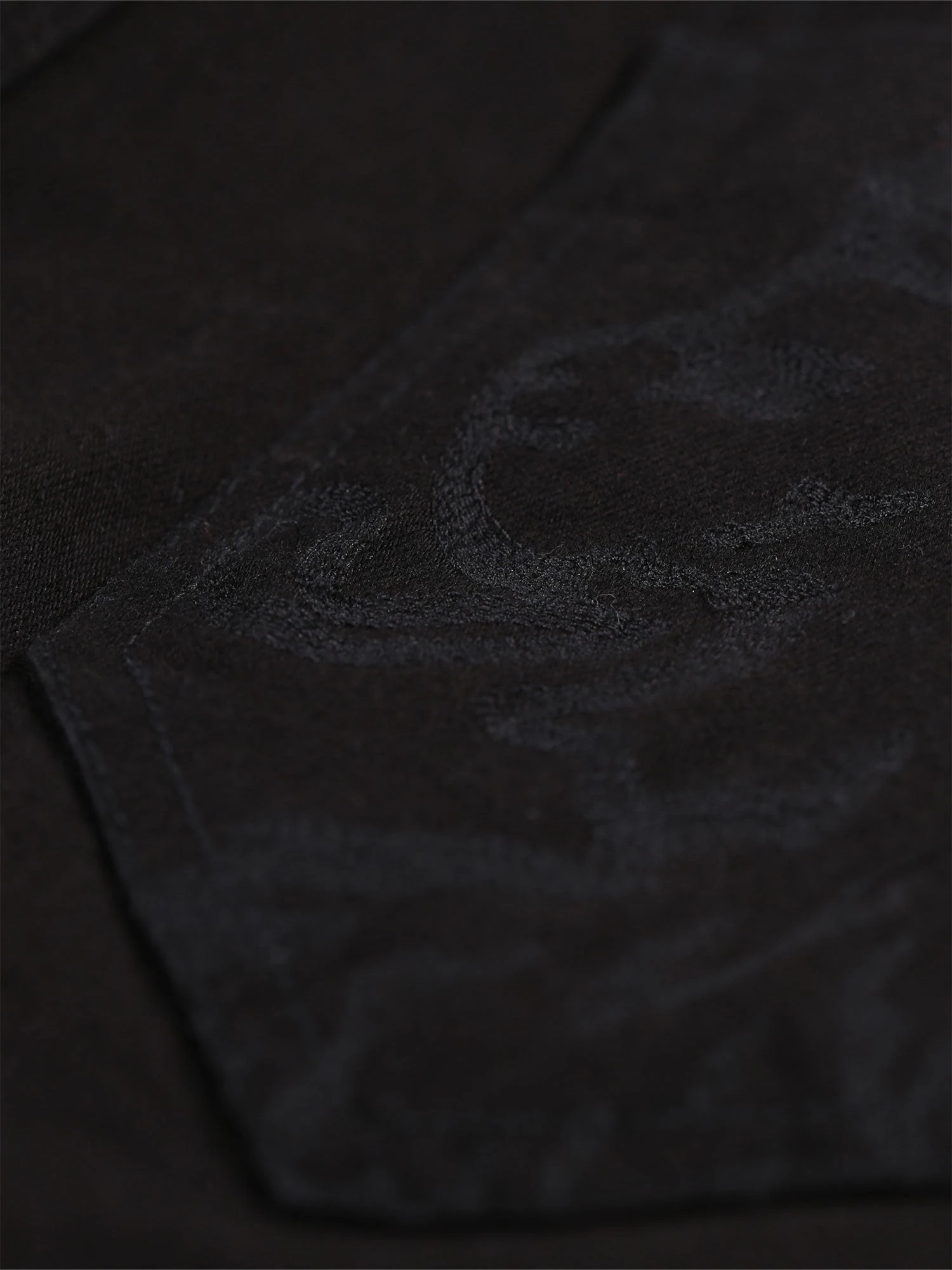 - Black embroidered lion on the back right pocket on the Black Worn colourway
