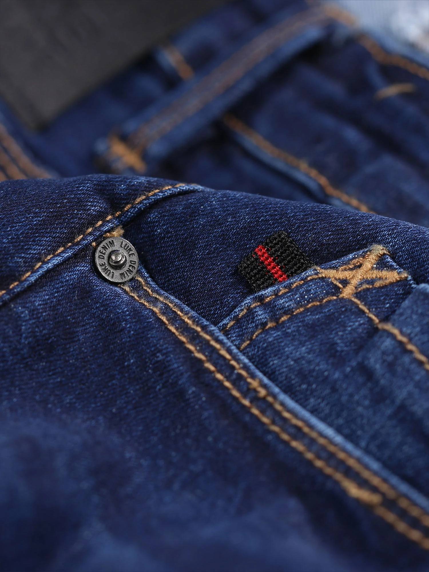 LUKE shows off a cool and contemporary aesthetic with these Vacuum denim jeans. The back waistband is decorated with a black faux leather patch which features a gloss lion rivet. These jeans are styled slim/tapered using a comfortable stretch-infused cotton denim and are completed with five handy pockets and a glossy summary fastening.